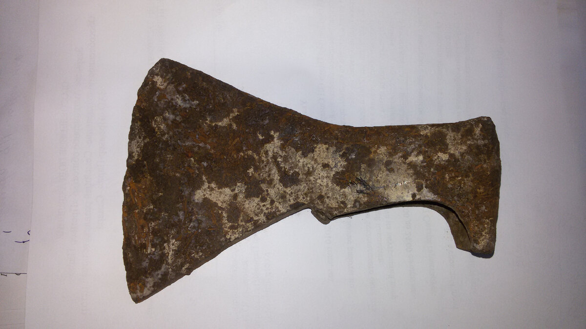 В сентябре поехал копать картошку в Исаклы, север самарской области. Тёща божилась, что сажала последний раз. Поэтому на "коп" у меня получается выбраться чуть ли не два раза в году. В мае и сентябре. Места примеченные есть, такими темпами копаю их давно. Лезет в основном всякая мелочь, разбитые колокольца от троек, битая керамика, изредка монеты. В этот раз ударно "копнул" картошку, и свободного времени было часа четыре до отъезда. Проверил домовые ямы, бугор и самый низ. Ничего путного не было. Четыре-пять бляшек от конской упряжи, кованный гвоздик, поломанный штампованный медный крестик. Добрался до последней ямы. Она была в далеко от основного места поиска. Дома стояли по верху бугра. Рядом с домами видимо были когда-то сараи и иные сельские постройки. Поселение судя по монетам было конца 19-го начало 20-го века. Мусора современного практически нет, чем и хорошо это место. Эту, последнюю яму я проверял лет пять назад если не больше. На прибор пришёл "чёрный" сигнал. Топор лежа