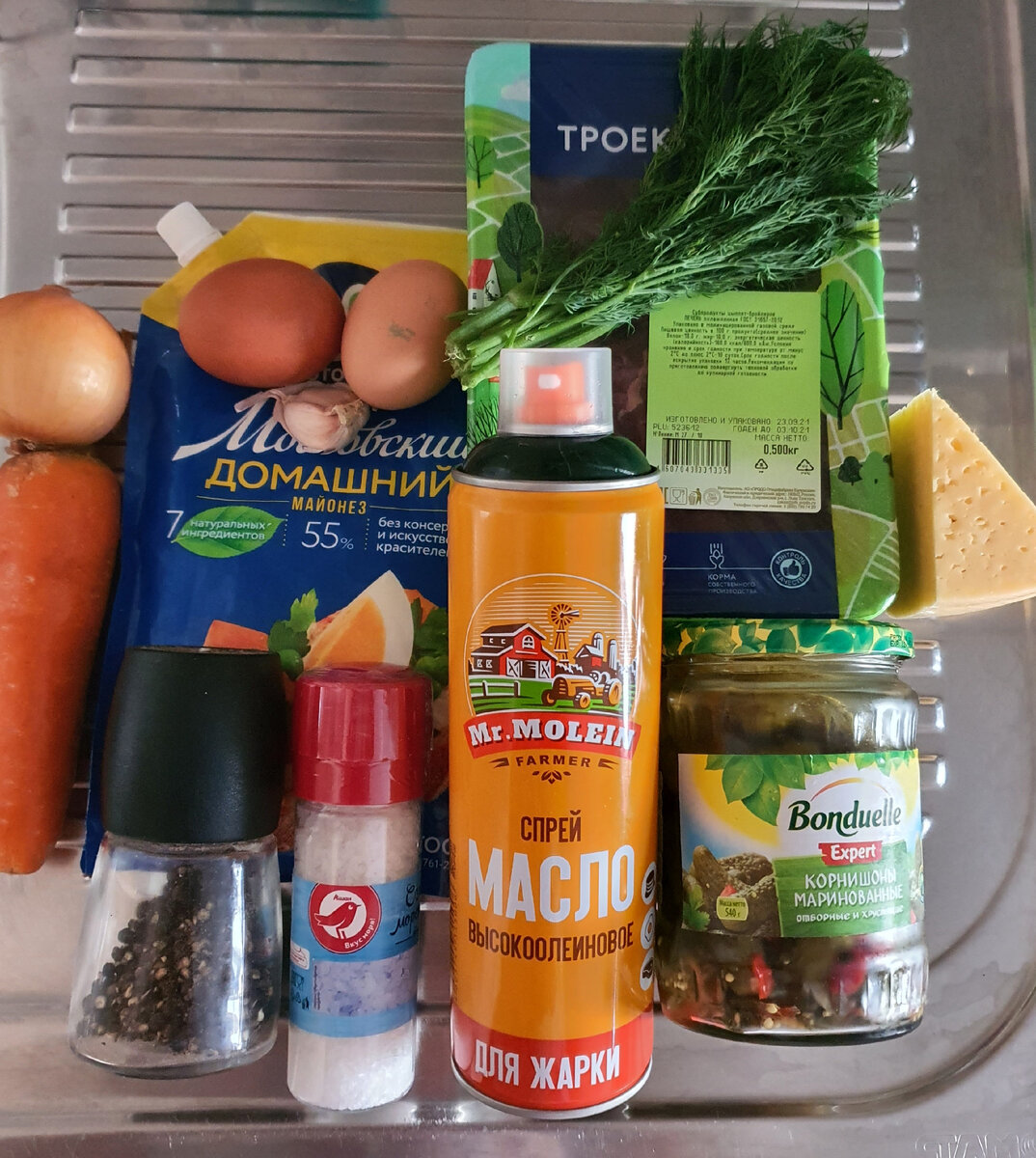 Если вам надоели привычные сытные салаты вроде «Оливье» или винегрета, самое время попробовать салат из обжаренной куриной печени. Это сытное блюдо, которое подойдёт на праздничный стол, также его можно подать в качестве полноценного обеда. Ингредиенты: - печень куриная 500 грамм - яйцо куриное 3 штуки - сыр твердый 100 грамм - огурцы маринованные 200 грамм - морковь 100 грамм - лук репчатый 100 грамм - чеснок 2 зубчика - укроп свежий, соль, майонез и черный молотый перец по вкусу - масло растительное 3 столовых ложки Печень промыть и очистить от всего лишнего. Обжарить печень в небольшом количестве растительного масла до готовности. Посолить и поперчить по вкусу. Обжаренную печень нарезаем мелкими кубиками или соломкой. Яйца сварить вкрутую и порезать мелким кубиком. Огурцы нарезаем мелкими кубиками или соломкой. Сыр натираем на крупной терке. Морковь очистить от кожуры и натереть на крупной терке. Лук очистить и нарезать мелким кубиком. Чеснок очистить и пропусти