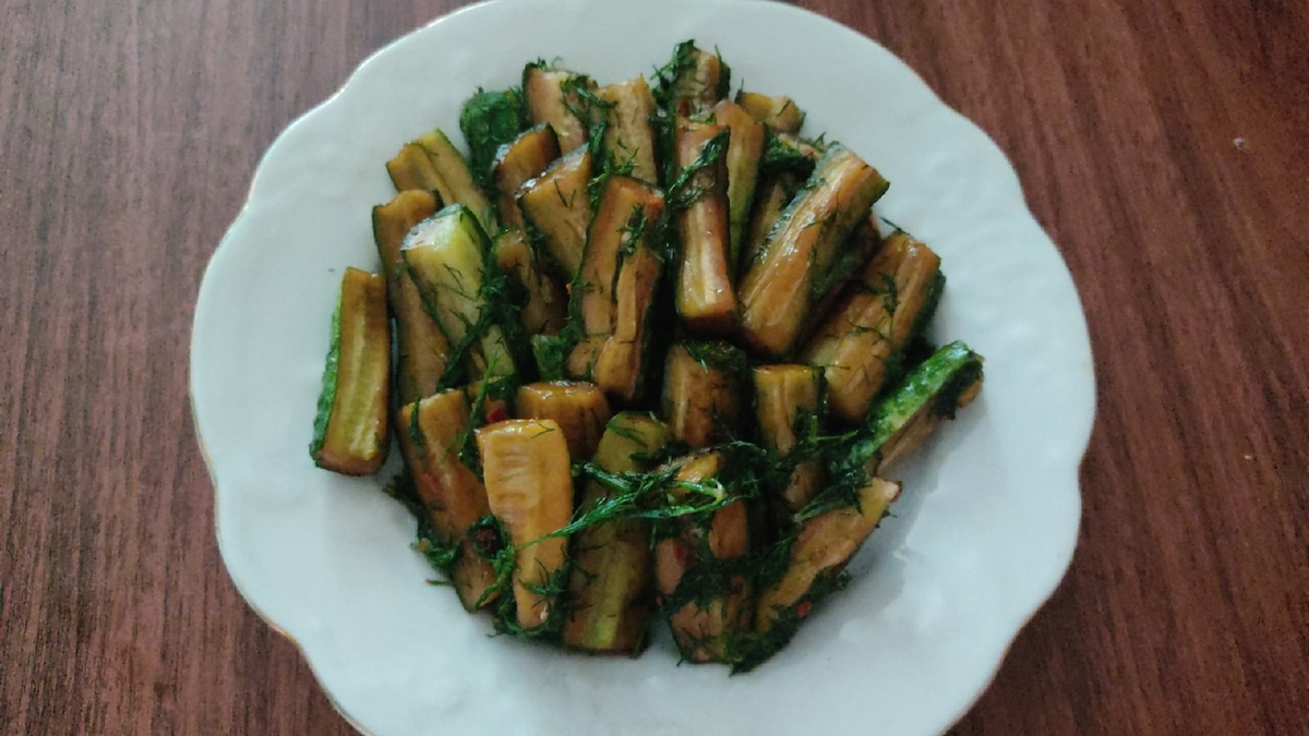 Здравствуйте дорогие подписчики и гости моего кулинарного канала. Лето на дворе!!!! Красота! В этом году огурцы у меня уродились как никогда. Решила в этом году буду их мариновать. Да не просто так, как привыкла за много лет, а по особенному! Решила сделать #маринованные огурцы в соевом соусе Отличная закуска на любой случай! Для приготовления понадобятся ИНГРЕДИЕНТЫ: Огурцы - 1 кг Укроп - 1 пучок Чили - 1 щепотка Паприка - 1 щепотка Соевый соус - 80 мл Сахар - 50 гр Чеснок - 7-8 зубчиков. Приступим? 1. Огурцы моем и нарезаем на небольшие дольки, см по 5. 2. Укроп нарезаем и добавляем к огурцам. 3. Чеснок пропускаем через пресс и добавляем в огурцы. 4. Также добавим сахар. Примерно 1 ст. ложку..... 5. соевый соус - 50-60 мл. 6. Любимые специи. В данном случае у меня перцы чили и паприка. Чили кладу совсем немного. Но если вы любитель остренького, тогда кладите этой пряности от души. 7. Хорошо перемешиваем. Я делаю это руками. При перемешивании немного отжимаю огурчики. 8. Для ог