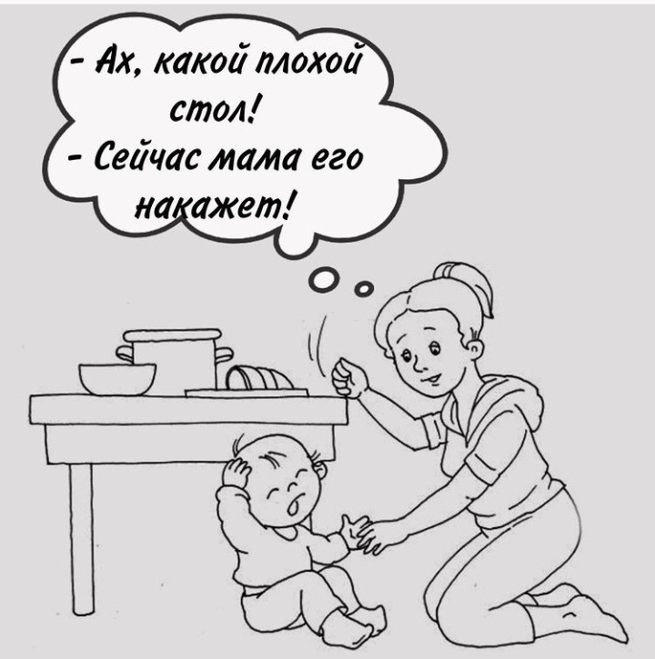 Ребёнок бежит и вдруг стукается об край стола/дивана/комода и начинает плакать. 👵Тут же подбегает мама/папа/бабушка и вместо того, чтобы утешать ребёнка начинает бить стол и приговаривает: «Ах какой плохой стол, сейчас ты у меня получишь! На-на! Вот так тебе! Как ты посмел обидеть маленького? Получай-получай!» 😨Когда вы вместо того, чтобы пожалеть, утешить ребёнка начинаете обвинять и бить стол, вы учите ребёнка тому, что всегда виноваты другие, но только не он. 😡Сначала стол виноват, потом асфальт, потом телефон летит в стену, затем мама виновата, что он проспал на пару в университете, потом жена, что он мало зарабатывает и тд. ❌Ребенку не удается приобрести опыт здорового чувства вины за себя, думая, что теперь всегда все должны делать так, чтобы ему не было плохо. ❌Он учится перекладывать ответственность на других, тем самым лишая себя возможности анализировать свои поступки и не наступать на одни и те же грабли. 🆘Во взрослой жизни такой человек чаще занимает позицию несчастн