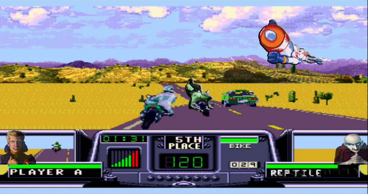 Не хорошая, не отличная, не классная, а восхитительная игра на #sega !!! Гонки на мотоциклах с элементом (не так - невзначай, а конкретным элементом в пол-игры) драк и подлянок во время заезда! Отмечу сразу прекрасное музыкальное сопровождение под стать каждому из уровней, которые, в свою очередь, отличались своим колоритом: если Кения - значит африканцы, носороги и прочие элементы саванн под соответствующие напевы; если Италия, то это виноградники под итальянскую музычку; если Япония, то это пагоды, нунчаки и борщевой цвет японского заката и т.д..