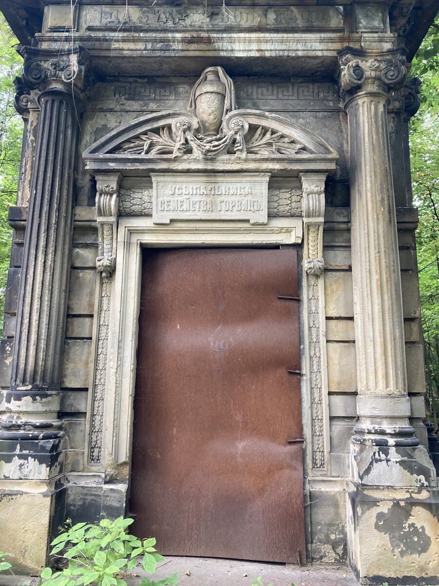 На Лютеранском участке Смоленского кладбища на Васильевском острове в Петербурге расположены несколько усыпальниц. Например, самая известная и, наверное, сохранившаяся из них — усыпальница семьи Горвиц, где покоится прах известного акушера Мартина Исаевича Горвица (1837—1883). Обратите внимание на стиль усыпальницы: строгие классические колонны ионического ордера, орнаменты, строгие линии. Склеп похож на античный храм. Несмотря на то, что вход в усыпальницу более-менее надежно закрыт, узкие окна стоят незащищенными. Конечно, пробраться через них сложно, но все равно памятник явно нуждается в серьезной охране и восстановлении. Судя по почерневшему камню, усыпальница горела. Возможно, не единожды. Еще одна усыпальница, которая стоит буквально у самого входа на Лютеранский участок кладбища. Сохранилась неплохо: мощные стены, крупный камень, практически не видны следы пожаров. Тоже наглухо закрыта. А вот этой усыпальнице повезло гораздо меньше: некогда красивая дверь разломана, внутри — пл