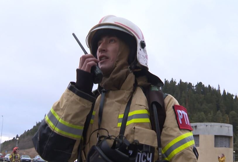 В Ханты-Мансийске сегодня тушили пожар в спортивном комплексе. Учебный. Сотрудники МЧС отрабатывали оперативность и слаженность действий. Неисправность проводки и короткое замыкание. Как итог – возгорание кабелей в раздевалке спорткомплекса. И вот едкий дым распространяется по этажу, создавая практически нулевую видимость. Это учения. Сотрудники МЧС отрабатывают пожарно-тактические маневры. Проводка вымышленная, а задымленность обеспечивают дым-машины. Огромный спорткомплекс, сотрудники которого оперативно обнаружили место возгорания и вызывают спасателей.