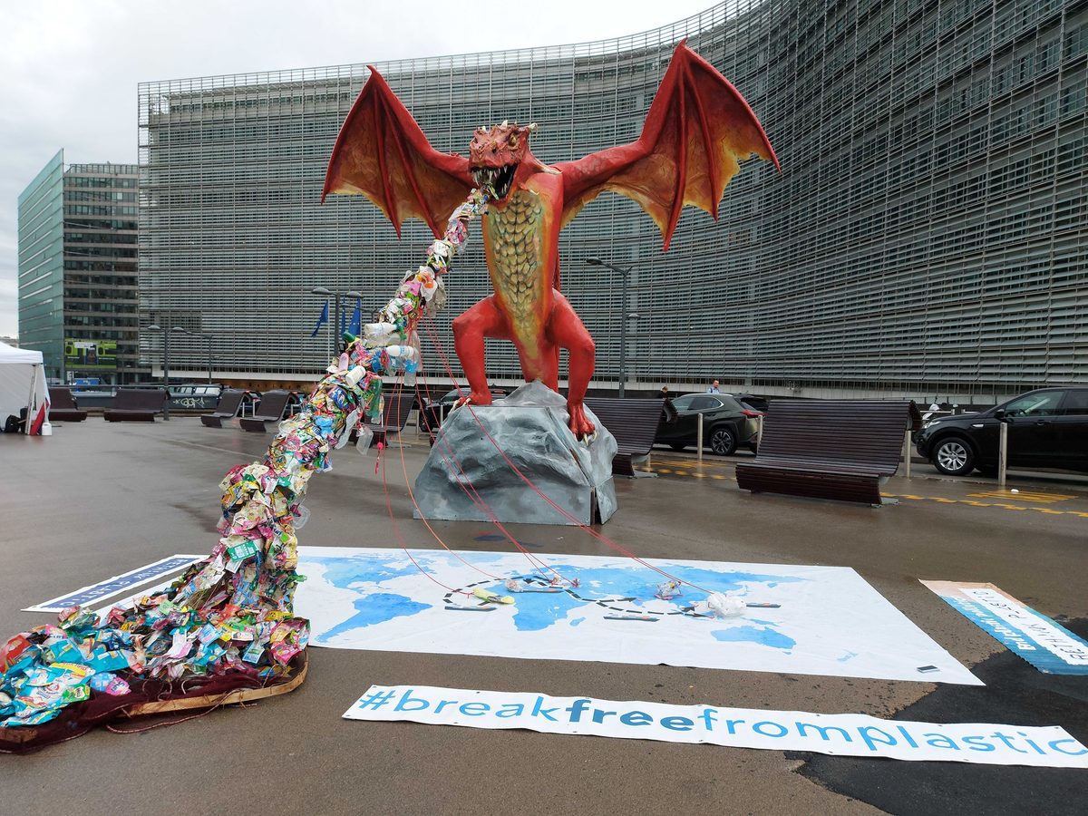 Дракон, изрыгающий пластик, напал на штаб-квартиру Еврокомиссии в Брюсселе
