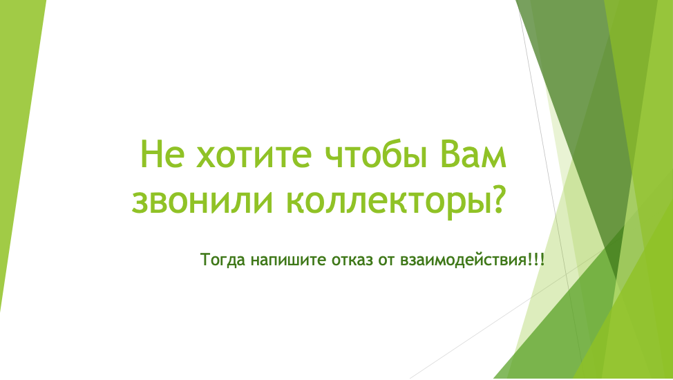 Не хотите чтобы Вам звонили коллекторы? Тогда напишите отказ от взаимодействия!!!