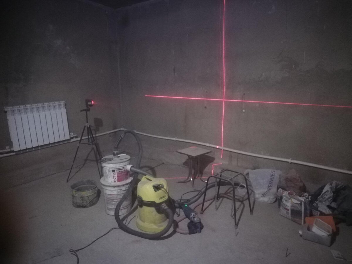 Чтобы залить ровную стяжку, необходимо выставить маяки - своеобразные направляющие, по которым будет двигаться правИло.