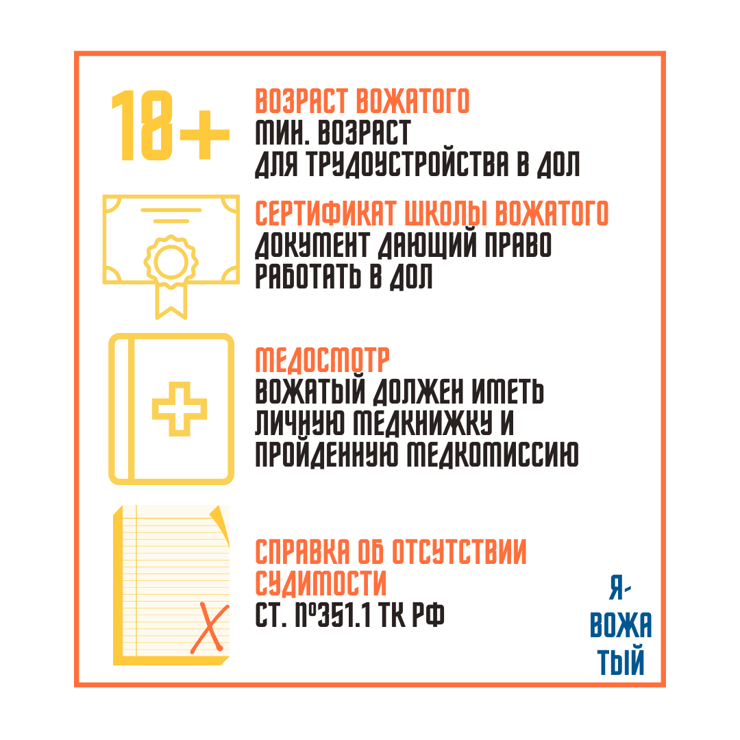 Начнём с того, что кто такой вожатый. Вожатый – это педагог, работающий с детским коллективом или же, это друг и наставник, с которым можно поделиться своими мыслями, переживаниями, который выслушает и всегда поможет с советом. Теперь к самой профессии. Вожатым можно стать, если вы достигли 18 лет, а не тогда, когда получили паспорт. Но не стоит забывать, что это реальная профессия, к которой не стоит относиться халатно. Вожатый, это профессия, которая может стать для вас стартовой площадкой в профессиональном росте. Ведь вожатый, это сундук с множеством умений: творчество, артистизм, ответственность, самостоятельность и др. Вожатым может стать даже электромонтёр, который любит детей. Не обязательно иметь законченное или незаконченное педагогическое образование. Тем не менее, обязательно нужно пройти обучение курсы вожатского мастерства, говоря по-другому «Школу вожатого». По окончанию, которой вам выдают официальный документ (сертификат), дающий право работать вож