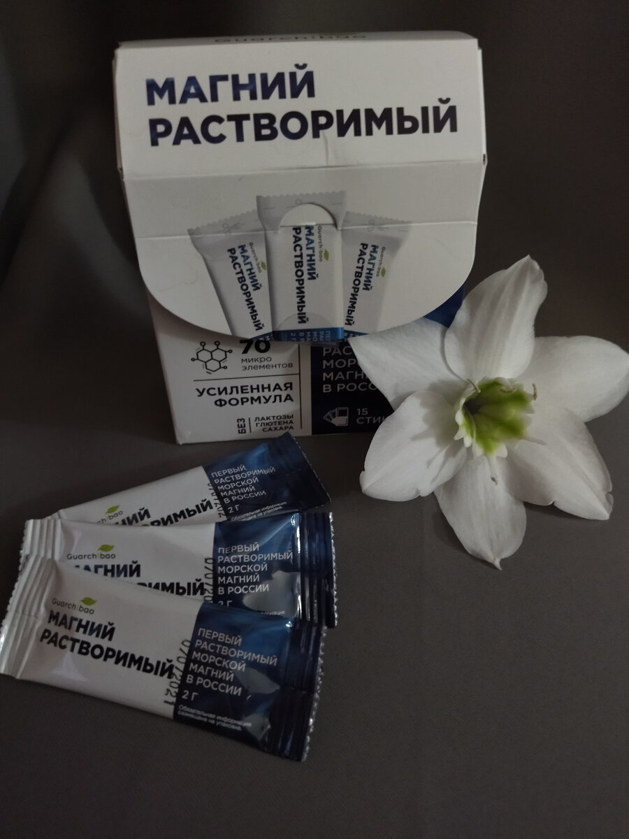 Существует классический набор симптомов, которые могут сопутствовать дефициту магния: чувство тревоги, спазмы, судороги и тики, учащенное сердцебиение. Все это обычно может усугубляться головными болями, бессонницей, повышенной раздражительностью, частой сменой настроения и хронической усталостью. Чтобы избежать таких неприятностей нужно раз в полгода пропивать курс магния!!! Морской магний Guarchibao Mg Soluble растворимый Органический магний – защита и восстановление всего организма. Он помогает снизить стресс, повышает работоспособность, улучшает сон, внимание и память. Также магнезиум является одним из основных элементов хорошей работы сердечно-сосудистой системы, возвращает крепость костям, избавляет от мышечных спазмов, а еще позволяет организму быстрее восстанавливаться после физических и эмоциональных нагрузок. Важен магний и при похудении. Он помогает сохранять душевное равновесие и положительно влияет на работу желудочно-кишечного тракта. Магний Guarchibao имеет особую ра