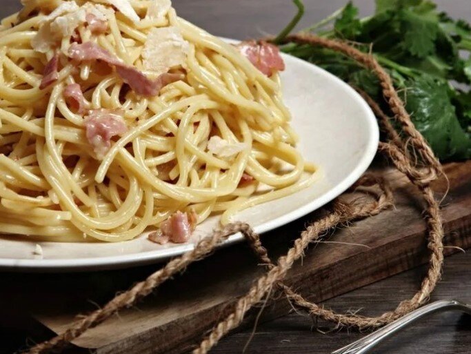 Паста карбонара - всемирно известное блюдо из пасты из Лацио (Италия). Нет единого мнения о происхождении этого блюда. Легенда гласит, что он был изобретен вскоре после Второй мировой войны в оккупированном американцами Риме как модификация вашего завтрака. Другая версия гласит, что келеры готовили это блюдо во время перерывов в работе, в переводе это блюдо называется «Спагетти по-Келерски».