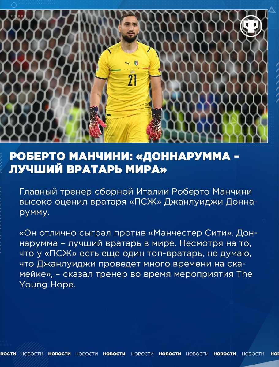 Роберто Манчини: "Донарумма - лучший вратарь мира"