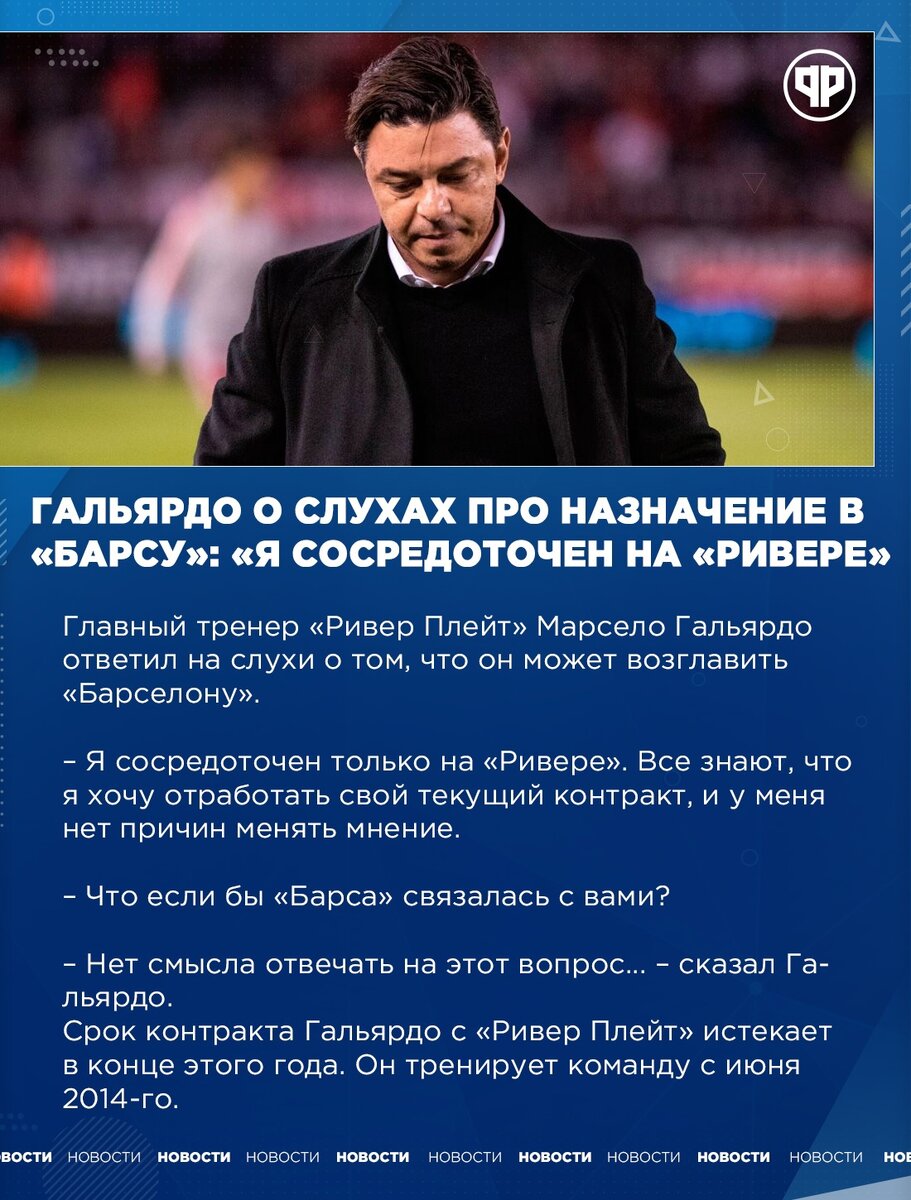 Гальярдо о слухах про назначение в "Барсу": "Я сосредоточен на "Ривере"