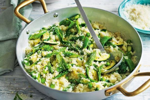 Пожалуй, не найдется человека, который бы хоть раз не слышал об итальянской кухне. Все больше людей, побывав в солнечной Италии, становятся поклонниками средиземноморских блюд. Ризотто можно отнести к основному национальному блюду. Для его приготовления больше всего подходит рис Арборио, обладающий мягкой кремовой структурой. Это наиболее популярный из всех сортов; его короткие, овальной формы, зернышки при варке не развариваются и не склеиваются. Для приготовления еще более кремового ризотто подойдет рис марки Карнароли или Виалоне Нано. Для приготовления 4-х больших порций ризотто понадобится: Рис 350-400 гр. 1 луковица 1/2 стакана качественного белого сухого вина Спаржа Горошек Бульон (на 100 гр. риса приблизительно 500 мл бульона) Cливочное масло 30 гр. Cыр Пармезан Cоль, перец по вкусу Прежде чем начать готовить блюдо, заранее сварите бульон. Для ризотто лучше всего использовать куриный, но можно говяжий или овощной – кому какой нравится. В бульон можно добавить петрушку, тимьян,