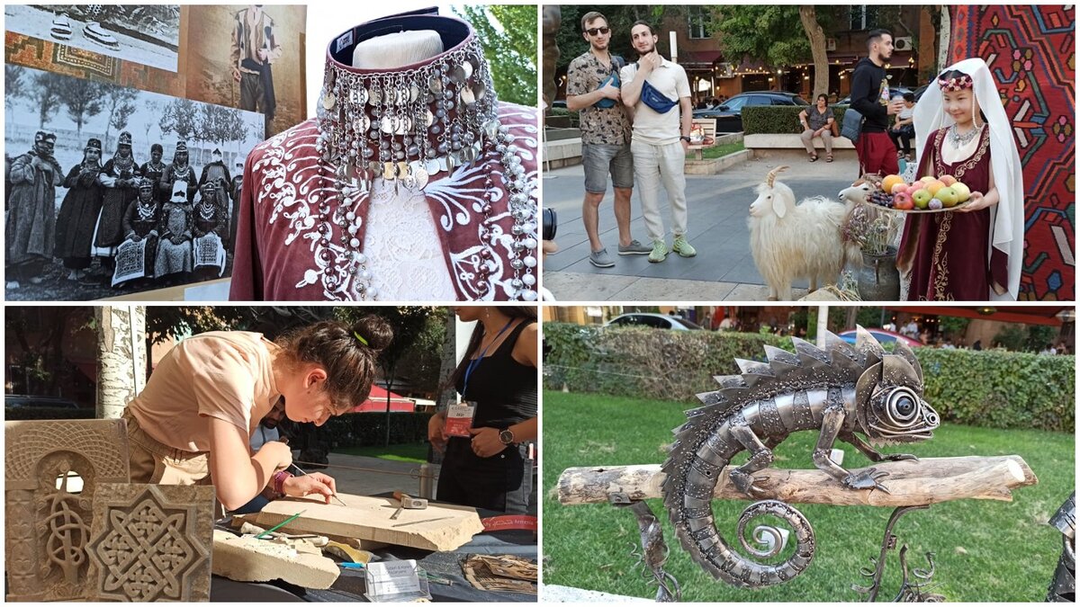 Покрасоваться в армянском национальном костюме, высечь на камне первую букву своего имени, от души посмеяться над огромной «железной» мухой, попробовать себя в качестве ковроткачихи — эти и многие иные увлекательные действа можно было осуществить в ходе ставшего традиционным фестиваля «My Handmade Armenia». Участники мероприятия вот уже четвертый год собираются у подножия Каскада, где культурный центр «Гафесчян» любезно предоставляет площадку под многочисленные павильоны отечественных мастеров – в этом году таковых было 45.
