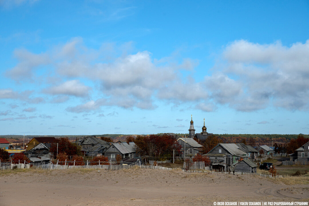 Граница с Полярным кругом. Одна из самых северных пустынь мира. В её сердце лежит заносимая песками деревушка Кузомень. Мы едем туда посмотреть на старинное поморское кладбище в дюнах, на поморский быт, сохранившийся ещё в дальних уголках Кольского и на диких лошадей, якобы обитающих в пустыне. Дорога в Кузомень идёт от Варзуги сначала по живописным лесам, а потом по самой настоящей пустыне. Не всякая машина будет уверенно чувствовать себя в условной колее, накатанной местными "буханками" прямо в песке. О самом месте я ещё напишу большой очерк, но сейчас хочу показать вам как выглядит магазин в Кузомени. Жителей в селе немного. Около восьмидесяти человек. У всех есть транспорт, и я догадываюсь, что за всеми благами цивилизации они мотаются на "большую землю" через пески. Поэтому удивлён, заметив на окраине магазин. Заходим. Несмотря на то, что село в прямом и переносном смысле можно назвать "медвежьим углом", на входе висит объявление, что посетители обслуживаются только в масках. Удив