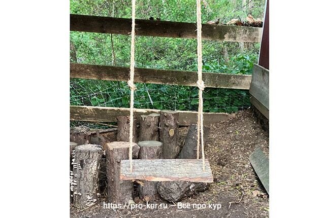 Во-вторых. Если вы сделаете куриные качели, это дает курам еще одно место, где они как бы прячутся, избегая чрезмерно влюбленного петуха. Я заметил, что некоторые из моих кур прячутся на насесте в курятнике, чтобы избежать любвеобильного петуха и сберечь свои спинки от его "нежных" когтей. Куриные качели можно крепить внутри курятника на зиму, и обязательно сделать на выгуле. Пусть развлекаются!