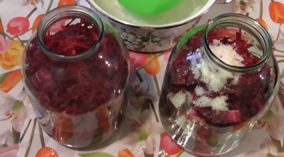Приветствую, сегодня вы узнаете, как готовить напиток долголетия. Все рецепты мудрости приходят нам из древности, от наших предков. Одним из таких рецептов, который дошел до наших времен, является свекольный квасс. Он способствует омоложению и очищению организма, помогают бороться с лишним весом, так как квас нормализует обмен веществ, укрепляет иммунитет, очищает кровь, печень и почки. Кроме большой пользы квас тонизирующий и приятный на вкус Нам понадобится: Удобно готовить квас в трехлитровых банках. Нарезаем свеклу на небольшие кусочки и наполняем трехлитровую банку на 2/3. Сверху добавляем немного свеклы натёртый на тёрке. Вот 2 в банки я решил приготовить одну банку без добавления сахара, а во вторую банку добавил одну столовую ложку сахара Далее заливаем сверху кипяченой водой, оставьте место для брожения, закрываем банку марлей и оставляем в тёплом месте. Через день нужно открыть банки и собрать пену. По прошествию еше двух дней, открываем и снимаем пену. Через день он уже бу