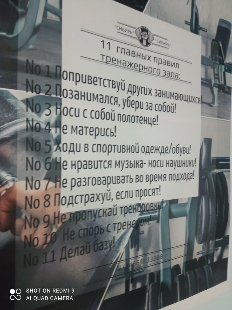 1-первое что бросается прямо в глаза при входе в наш тренажёрный зал. это плакат в котором четко ,понятно и лаконично написано о том что нельзя делать у нас в зале а что можно. Сейчас я разберу для вас все по порядку.
