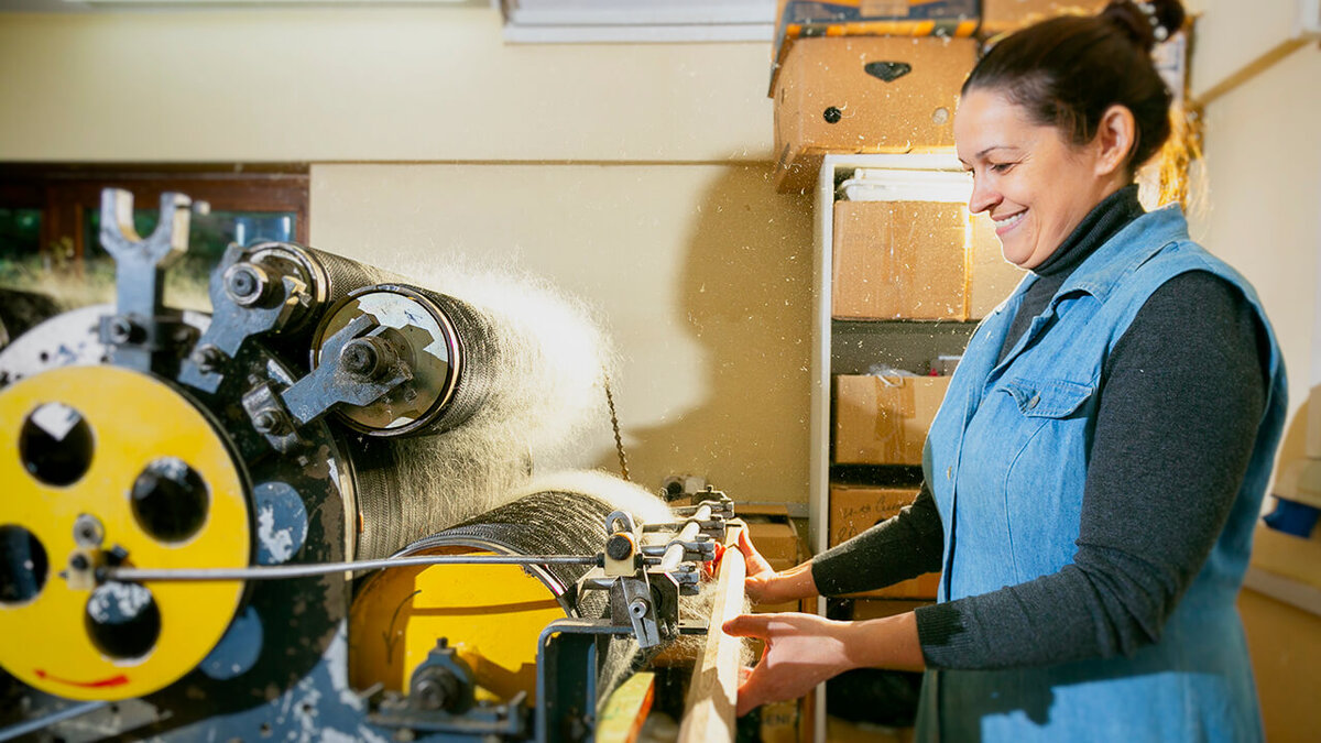 В центре небольшой комнатки стоит агрегат советских времен с гордым названием «Орловчанка». В него закладывается вымытая и протрепанная шерсть, двигатель приводит в движение множество валиков с зубцами, которые ее прочесывают. На выходе — воздушное облако из шерсти, похожее на сахарную вату. Хочется прижаться к нему щекой — такая от него исходит теплота…