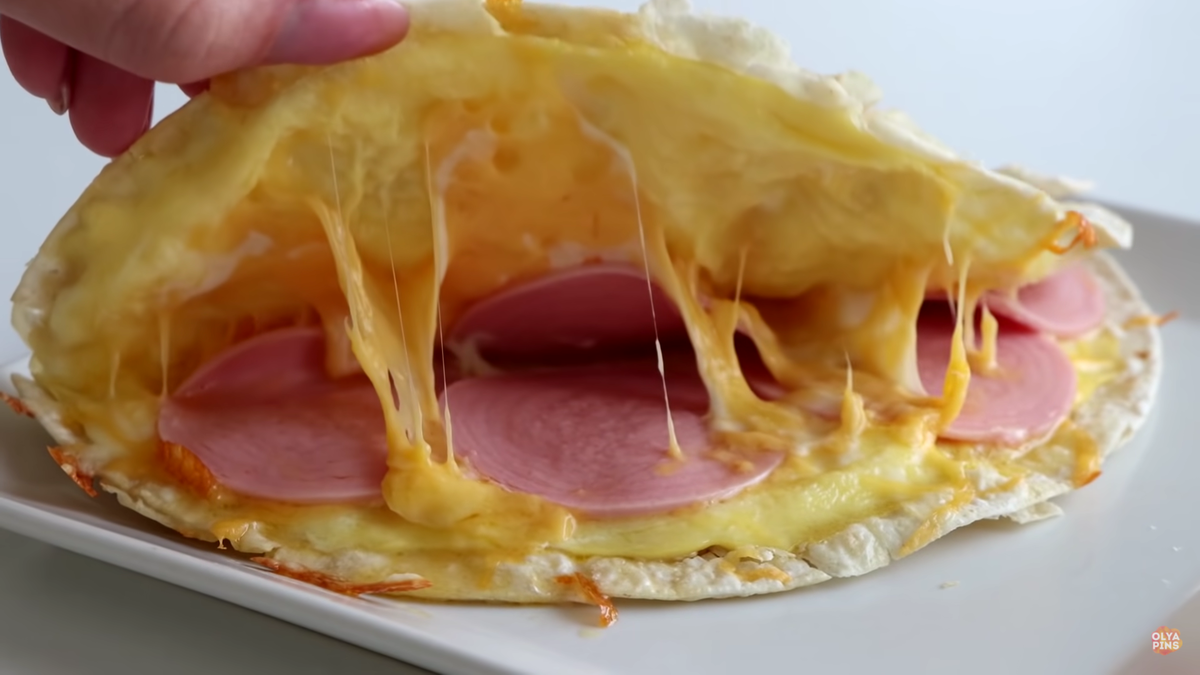 Лепёшка с сыром и колбасой на завтрак, если нет времени готовить.