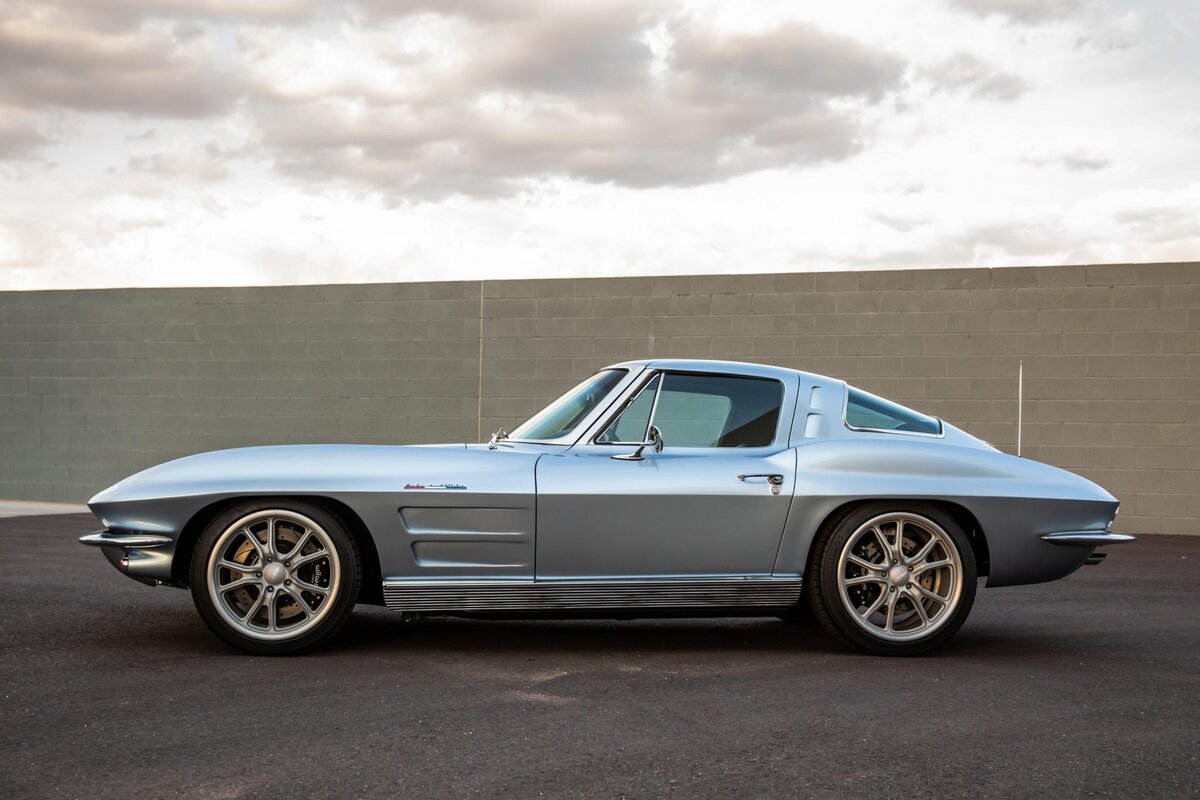 В двигателях "Корвета" 1963 года ничего не менялось, но иногда новинки появлялись в его уникальном кузове. К стальной раме кузова добавился стальной каркас кузова Bird Cage ("птичья клетка"), обеспечивающий усиленную опору для пластика. Этот каркас оставался неотъемлемой частью автомобилей "Корвет" более тридцати лет. Купе "Корвет-Стинг-Рэй", как он официально назывался, был настоящим большим туристическим автомобилем. Его дизайн радикально изменился. Наиболее уникальным элементом стал вертикальный разделитель заднего окна. Он явился предметом дискуссии уже при опытном производстве, когда Билл Митчелл говорил, что разделитель является сердцем и душой этой модели, а инженер Дунтов верно указывал, что эта полоса создает опасную слепую зону для водителя. Победил Митчелл, и автомобиль стали выпускать с нетронутым разделителем. Существование слепой зоны заставило многих обладателей переделать заднее окно, в результате "Корвет" 1963 года с разделителем заднего окна оказался самым редким среди всех "Корветов", редким настолько, что в последние годы некоторые обладатели пытаются еще раз переделать заднее окно в своих модифицированных "Корветах". Этот разделитель был одним из самых заметных элементов скоростного дизайна. Наклонный капот двигателя опускался между линиями крыльев, его нацеленность вперед усиливалась центральной стрелой-волнорезом. Его силуэт не искажался благодаря установке скрытых поворачивающихся передних фар.