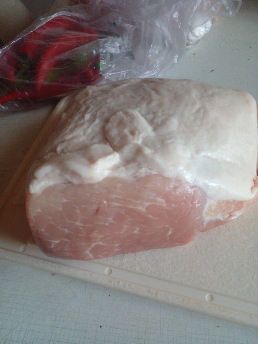 Обожаю маэстро Лазерсона. Много смотрела его передач по телевизору, а сегодня неожиданно он попал с видеороликом ко мне в ленту. Естественно, стала смотреть. Название было что-то, типа, попробуйте это блюдо и не захотите шашлыка. Меня и за меньшее ограничивают, но Лазерсону я прощаю всё. Тем более, вряд ли он сам название придумал. И потом, если кому-то, кто никто, можно написать заг, например: "Приготовил блюдо, гости визжали от восторга", то чегой-то нельзя этого мастеру от блюда, которого я в полном восторге. Не визжала, наверное, потому что по-своему передела, а так вполне себе восторг. Называется шедевр от мастера Друсан Кебаб. Ну, не было у меня приправы из травы чабер и что это должно было меня остановить? И вас не должно! На полном серьёзе уже говорю. Покажу, как просто я вышла из положения. Важно, что главный принцип приготовления соблюдён. У меня такой кусок свинины. Окорок надо было нарезать, как на шашлык. Я сделала поменьше кусочки. Кинула их в раскалённое растите