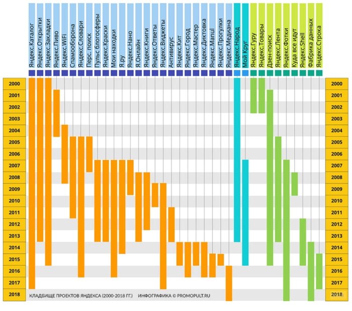 Собрали 36 проектов «Яндекса», которые запускались в разное время, но не дожили до наших дней. Большинство из них просто закрыли (по разным причинам), некоторые преобразовали в другие проекты либо передали другой компании.