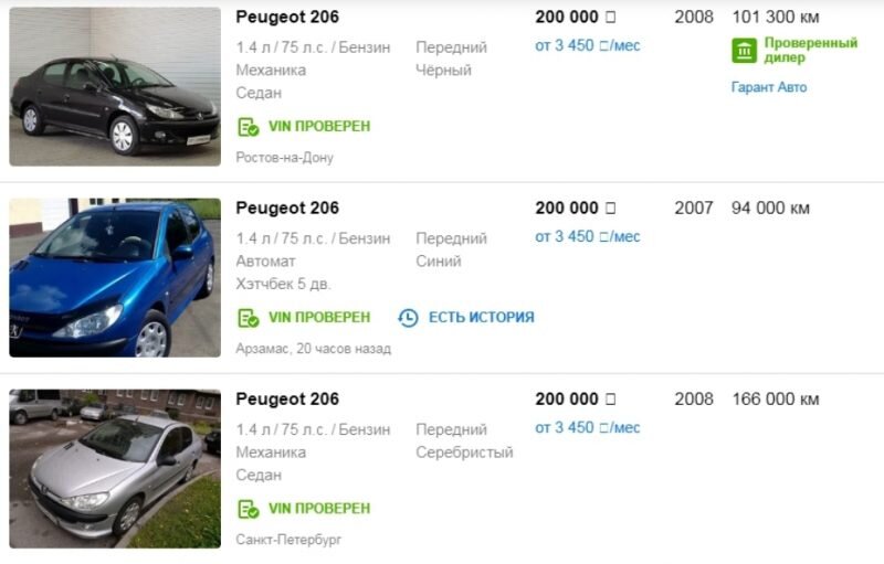 Стоит сразу отметить, что данная модель считается одной из самых успешных за всю историю французского автоконцерна. 206 модель не только дешевый вариант, но и неприхотливый и выносливый автомобиль. Даже 207 и 208 модель не пользовалась таким спросом, как простенький Peugeot 206.Автомобиль перестали производить с 2009 года, но это является плюсом, потому как более новые автомобили нельзя найти по стоимости до 200 тысяч.