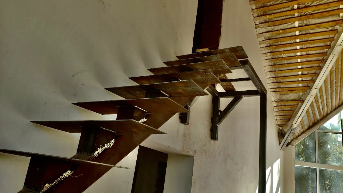 Железные лестницы - это надежно, обошлись заказчику в 190 000 рублей (работа с материалом за два изделия с ограждениями). Так выглядит визуализация этой лестницы Архитектора Проект лестницы Материал лестницы Каркас – труба 100х100мм Косоур – труба 150х150мм Ступени – гладкий лист металла 6мм Сейчас прорабатываются варианты ограждения для лестницы, как будут ограждения, добавлю в статью. Если статья была вам полезна и вы дочитали её до конца, поддержите проект лайком, это помогает развитию канала, мотивирует к написанию нового материала и да, подписывайтесь! 🙃 Дито (Дима) – Архитектор автор проекта (пишите, звоните, сделает всё) © Анатоль Иванов – Заметки строителя