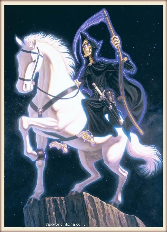 Однако волшебники подсчитали, что шанс «один на миллион» выпадает в девяти случаях из десяти. — Полагаю, это называется счастьем. Мор на мгновение задумался. — Нет, — в конце концов промолвил он. — Что? Воцарилось молчание. — Разрази меня гром, если я знаю, — произнес Альберт, выпрямляясь. — Наверное, они получают ответ, а затем используют их для своего блага. — И в чем же оно выражается? — В остроте лезвия. — Обычно нам удаётся воткнуть его между днём и ночью. — Я всегда считал его важным. — Люди приписывают ему такую важность только потому, что именно они из обрели его. — СМЕРТЬ ЕСТЬ ТОТ, КТО ВЫПОЛНЯЕТ РАБОТУ СМЕРТИ. — Я? Убиваю? — отозвался Смерть, явно оскорбленный до глубины души. — Да как тебе такое могло взбрести в голову? Людей убивают, но это их личное дело, здесь я ни при чём. Я вступаю в игру после того, как это событие свершится. Моя обязанность — заниматься человеком с момента убийства и дальше. В конце концов, ты не находишь, что мир, в котором людей уб