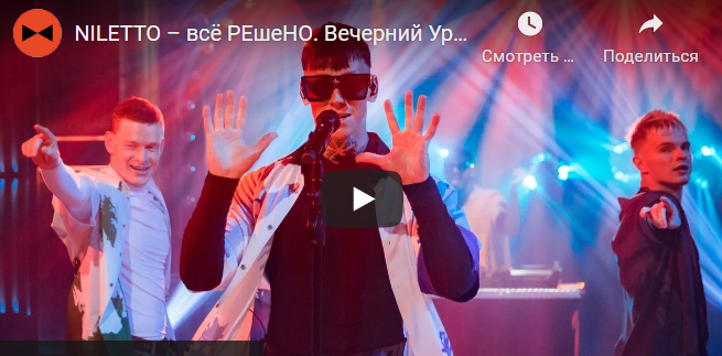 Он опять это сделал . В Вечернем Урганте наш NILETTO опять порвал зал. Пожалуй, написав главный хит осени. Песня длится кстати всего 2 минуты. Но глаз не оторвать реально! Иначе не было этого обзора. M Marishonok "Эстетическое наслаждение для ушей и глаз". Музыка прям льется little kermit Я будто на машине времени вернулся в то светло-грустное прошлое, где Гости из будущего доносятся из каждых колонок. Эта песня мой новый фаворит! Гениальный номер, образы подобраны шикарно. В общем, я кайфанул. Очень креативно и стильно у ребят вышло. С юбилеем Данила) Nik Cawe всё РЕшеНО = РЕНО Слушайте, а ловко он это придумал, я даже сначала не понял. Молодец! Аиша Литопова Хоть я и женщина далеко за бальзаковским возрастом, но нравится мне слушать нилетто Мы уже 2 года как следим за творчеством этого парня и прочим его на Евровидение от России. "Я украл их голос". Кажется мы нашли идеального кандидата на Евровидение от России "Я 38-летняя баба тащусь от него как 16-летняя". Как певец с Урала ст