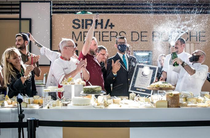 Три шеф-повара из Лиона, Франция, вошли в Книгу рекордов Гиннесса после того, как изготовили пиццу-рекордсмена с самым большим количеством разных сортов сыра, пишет The DairyNews. Они побили прошлый рекорд — 22 февраля 2020 года их французские коллеги представили пиццу с 254 сортами сыра. Шеф-повара Морган Нике, Франсуа Робен и Жюльен Серри изготовили пиццу с рекордным количеством сортов сыра на выставке SIRHA 25 сентября, где встретились представители сегмента HoReCa. Сообщается, что пицца была покрыта 834 сортами сыра, аккуратно выложенными поверх теста, — этим рекордом шеф-повара хотели популяризировать французские сыры, указать на их многообразие и привлечь внимание к сырным традициям Франции. Повара брали по 2 грамма сыра каждого сорта — для переноса на тесто их пришлось предварительно выложить в форму, чтобы начинка сохраняла целостность. #сыр #рекорды #французские сыры #книга рекордов гиннесса