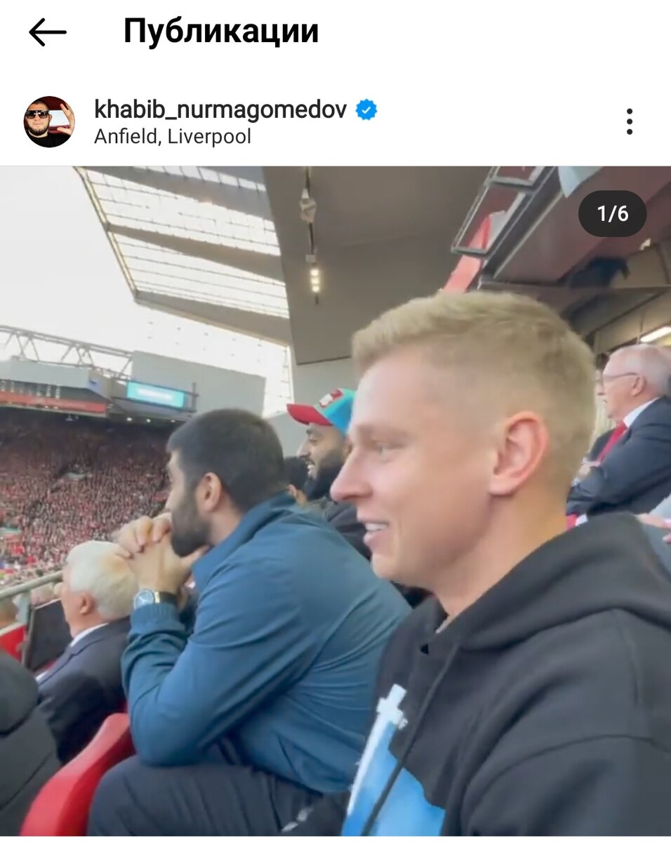 Боец UFC Хабиб Нурмагомедов посетил матч седьмого тура английской премьер-лиги между Ливерпулем и Манчестер Сити. Как сам признавался боец, он является ярым фанатом футбола и в детстве мечтал стать футболистом. Хабиб поддерживает хорошие отношения с такими звездами футбола, как Криштиану Роналду, Златан Ибрагимович и многие другие. Инстаграм Хабиба Кстати на трибуне русский чемпион смотрел матч с украинским защитником Манчестер Сити Александром Зинченко. Очень приятно видеть двух выдающихся спортсменов вместе на Энфилде.