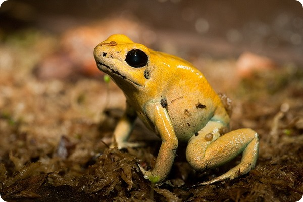 На первый взгляд кажется, что этот лягушонок совсем безобиден. Но что если Вы узнаете, что это милое создание своим ядом может убить десятерых... Ужасный листолаз (Phyllobates terribilis) – одно из самых ядовитых животных на Земле и самая ядовитая лягушка из известных науке. Её кожа покрыта сильнейшим ядом - батрахотоксином. Одна особь обладает достаточным количеством яда для того, чтобы смертельно отравить 10 взрослых мужчин! Коренной народ Колумбии – эмбера – на протяжении веков использовал мощный яд ужасных листолазов для смазывания им наконечников стрел. Эти яркие земноводные не превышают 2,5 см в длину и обитают в тропических лесах на небольшой территории тихоокеанского побережья Колумбии. И хотя их численность на этом маленьком участке земли достаточно велика, постоянная вырубка лесов и загрязнение окружающей среды ставит этих животных под угрозу вымирания. Окраска ужасного листолаза, которая может быть желтой, оранжевой или светло-зеленой, призвана «предупреждать» неприятелей об