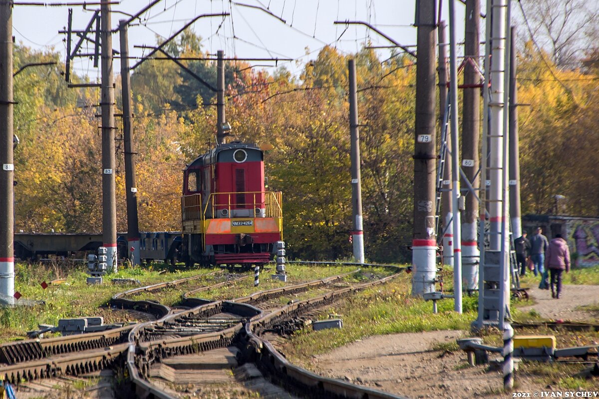 Сегодняшний обзор, как мне кажется, опять вызовет не самую однозначную реакцию. Следует предупредить, что он - скорее шутливый, нежели информационный. И даже, не смотря на это предупреждение, больше чем уверен, найдутся "настоящие железнодорожники, которые будут утверждать - писать надо "па руски, что бы все саответсвавало истене". Ну встречаются такие "поучатели". Вот им-то читать не рекомендуется, а остальным... А остальным - добро пожаловать! 1. Итак, в один солнечный воскресный день, в который ты попадаешь на станцию Купавна (Горьковское направление Московской железной дороги). И видишь там поезд с маневровым тепловозом ЧМЭ3-4264. Ничего необычного - маневровый на железнодорожной станции - это атрибут если необязательный, то уж точно не уникальный. А хочется, чтобы рядом был еще какой-нибудь поезд и локомотив. Берешь такой в руки "волшебную палочку", вжуууух! И... 2. И рядом оказывается "по щучьему велению" тепловоз 2М62у-0022. Да еще не в корпоративной окраске, а самый что ни на е
