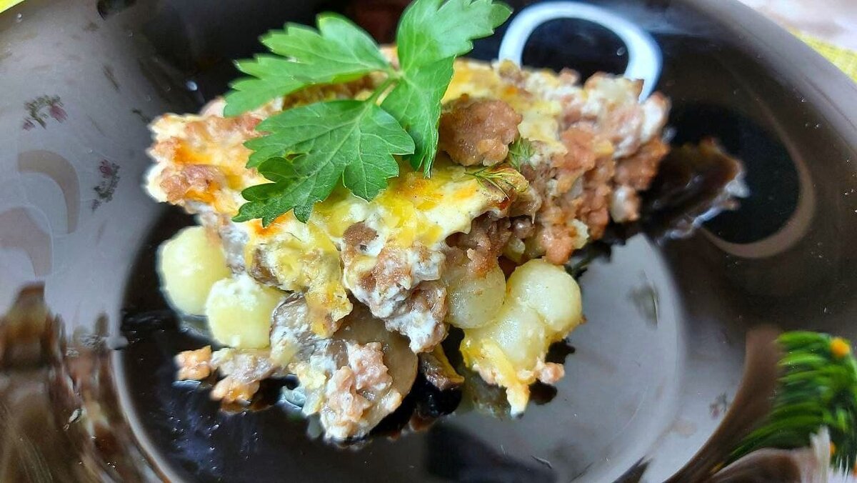 Когда надоедает гречка, рис и макароны, хочется чего-нибудь новенького. Я нашла отличный вариант, который разнообразит ваше меню. Это картофельные ньокки с мясным фаршем. Нам блюдо очень понравилось, поделюсь рецептом и с вами. Оно простое и вкусное. Лук нужно мелко нарезать. Обжарить его на подсолнечном масле до прозрачности. Затем отправляем к нему фарш. Солим, перчим, добавляем чеснок, можно гранулированный. Специи, зелень по вкусу. Периодически перемешиваем, жарим пока мясо не станет рассыпаться. Шампиньоны нарезать и обжарить на подсолнечном масле. Посолить.