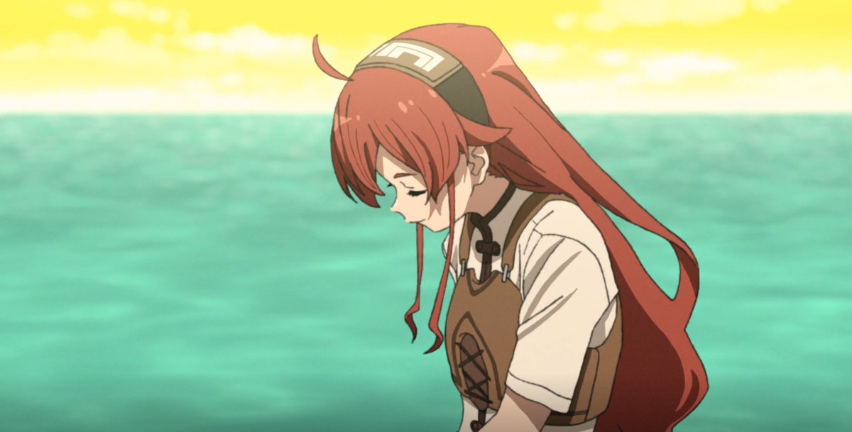 Ну вот мы и дождались новый сезон аниме сериала "Реинкарнация безработного". Не знаю как вы, но я очень ждал продолжение первого сезона. По моему мнению это одно из самых лучших аниме за 2021 год. 😁 Серия начинается у какого-то моря, нам показывают что Рудеус, Эрис и Руйджерд пришли к морю, видимо именно через это море они будут переплывать, дабы вернуться домой. Без пошлых мыслей Рудеуса не обошлось и тут. Далее Руйджерд говорит что данное море кишит магическими зверьми. 🐊 В следующей сцене нам показывают корабль с Рокси на борту, который приплыл в этот городок. Скорее всего Рокси приплыла сюда из-за дел королевства 👑 , но скорее Рокси тут выступает в роли телохранителя нежели какого важного человека. И это значит что Рудеус и Рокси снова встретятся после такой долгой разлуки? Но в первой серии нам так и не показали эту встречу. Рокси подглядывала за тренировкой Эрис и Руйджерда, и скорее всего узнала Эрис, но это не точно. Хотя вроде как Рокси знает о семье Грейрат. Но Руд