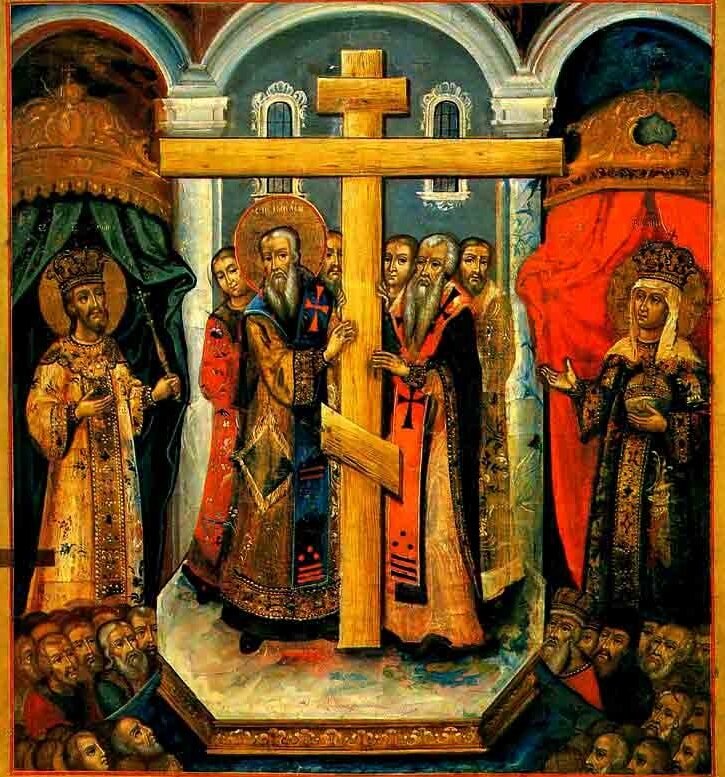 Приветствую всех читателей канала! Римский император Константин Великий жил в начале IV столетия. Во время войны с Максентием он, тогда еще язычник, увидал днем на небе крест. Император устрашился, ведь крест был позорным орудием казни. Константин решил, что это дурное предзнаменование. По преданию, в ту же ночь ему явился Сам Спаситель и, обещая победу над врагом, повелел царю устроить полковое знамя с изображением явившегося креста. Войдя с победой в Рим, император стал еще более прежнего покровительствовать христианам, а затем решил отыскать Крест, на котором был распят Христос. Мать Константина, царица Елена обрела святыню в Иерусалиме. Во время раскопок на холме, где находился языческий храм, было обнаружено три креста. Однако, дощечка с надписью: "сей есть Царь Иудейский", лежала отдельно, и определить, какой из крестов был Крест Господень, было невозможно. Патриарх Макарий поочередно возложил кресты на покойника. Умерший воскрес, когда на него возложили Крест Иисуса.