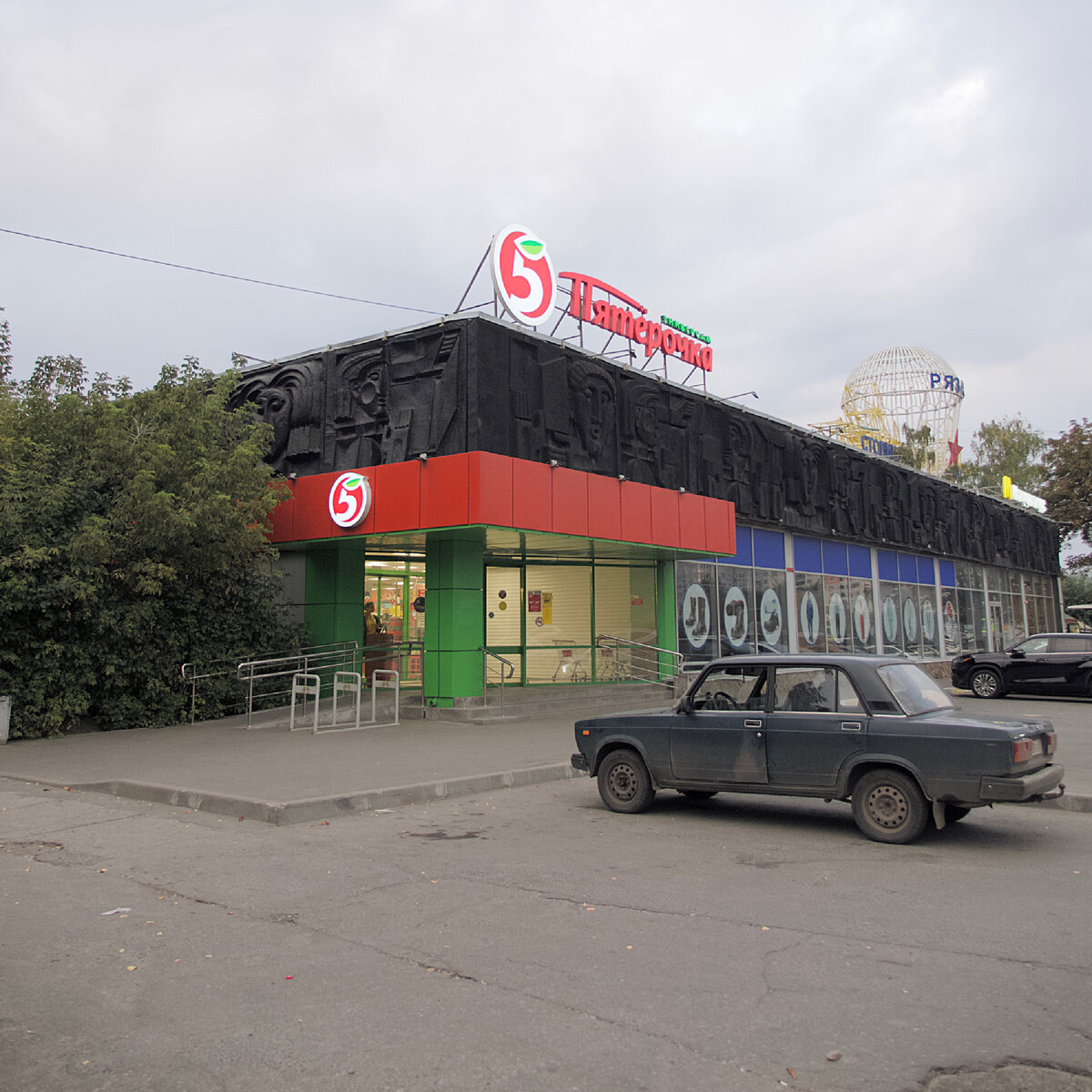 Пример того, как капитализм все-таки победил социализм в нашей стране, которой больше не нужны книги и знания. Во многих наших городах обязательно был свой «Дом книги», где можно было купить интересную книжную литературу на любую тему. Так было и в Рязани. «Дом книги» построили в 70-е годы. Здание отличалось выдающимся барельефом, на котором были изображены большие мужские и женские лица, руки, и конечно же книги. Чудом «Дом книг» уцелел в 90-е, но не выжил в Новейшей истории России. В 2008 году здание стало магазином сантехники «Верона». Весь барельеф был перекрыт рекламными вывесками. Хотя что тут удивляться, когда весь город в таких вывесках даже в 2021 году! В здании успели поторговать сантехникой, радиаторами, люстрами и даже автозапчастями! К сожалению, от былого «Дома книги» остался только барельеф. Красивейшую вывеску скорее всего распилили на металл, а интересные угловатые панорамные окна разбили и выкинули. В 2018 году сюда пришла «Пятёрочка». Я побывал во многих город