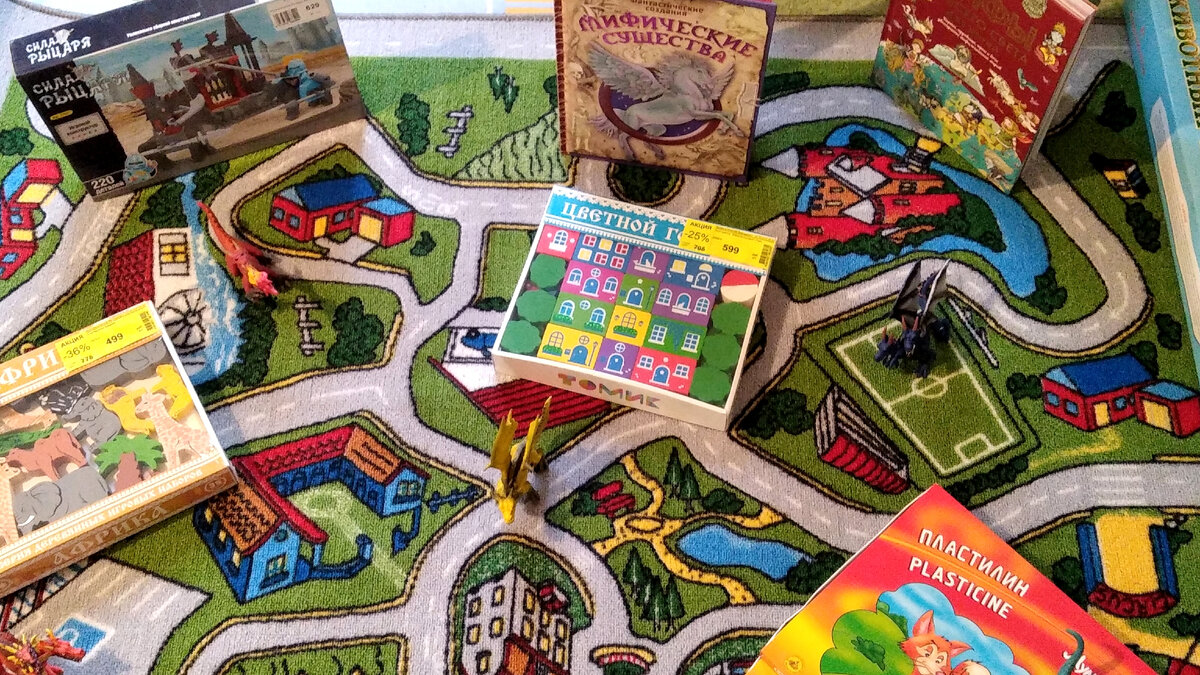 Вообще, разложить подарки на диване мы планировали с вечера, как дети уснут. Но накануне я пожарила творожники. Потом помыла посуду. Испекла бисквит. Сварила кашу. Взбила крем и собрала торт. Опять помыла посуду. Сварила суп. Приготовила мясо. Закрутила яблочное варенье. Помыла посуду... К вечеру поняла, что хочу упасть и забыться. А тут еще Коробок умудрился - починял забор, резал болгаркой трубу и поймал глазом какую-то (предположительно) металлическую опилку. Весь вечер мы глаз промывали и закапывали, без особого, впрочем, эффекта. Папа стал циклопом. Заставлять себя в таком состоянии заниматься подарками было жестоко, поэтому мы поставили будильник на 6 утра и легли спать. Естественно, будильник никто не услышал. Вскочили в 7 часов и давай судорожно раскладывать подарки: А еще бабушка и дедушка из Ростова прислали мальчишкам боксерскую грушу и перчатки. Собрал Коробок грушу, расстелили мы коврик, разложили подарки - тихонько, чтобы раньше времени не разбудить детей. Дети не пр