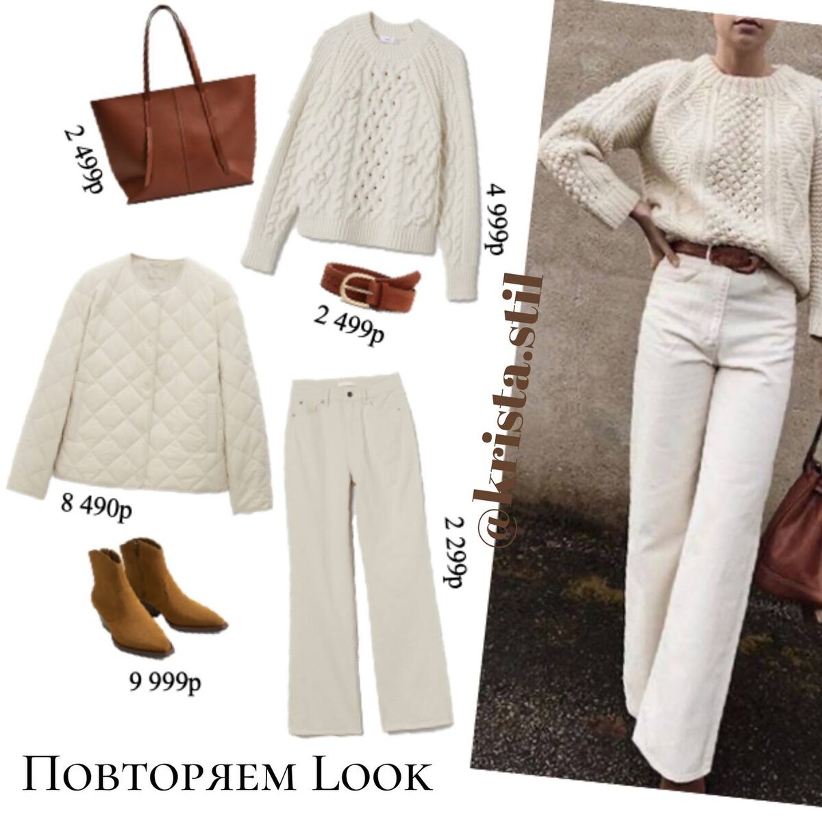 #повторяемобраз Свитер - Mango, 4 999 ₽, арт. 17057109-ODESSA-LM Джинсы - H&M, 2 299 ₽, арт. 0976132001 Сумка - Mango, 2 499 ₽, арт. 17050110-CALO-LM Казаки- Mango, 9 999 ₽, арт. 77044419-JIMMY-LV Ремень - Mango, 2 499 ₽, арт. 17040135-DENIA-LM Куртка - Massimo Dutti, 8 490 ₽, арт. 6702/602 Ставь ❤️ если понравился look. Пиши в Директ и я подберу тебе твой индивидуальный стиль и соберу женственный гардероб. Ты будешь выглядеть элегантно и твой образ будет вне времени! В общем пиши в Директ!