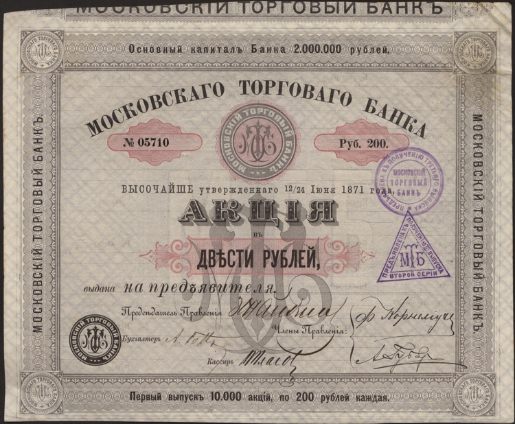 Ценные бумаги. Взгляд в прошлое. Московский торговый банк