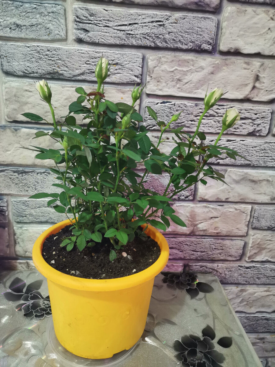 Вот эту розу, я купила 30.08.2021 в супермаркете. Об этом радостном событии я рассказала тут Вот так она выглядит сейчас 04.10.2021. Листики конечно не такие темные как были сначала, но это нормально для домашней розы. Набрала бутоны и собралась цвести, но я ей этого не дам, потому что буноны мелкие, а значит сил у нее маловато. Вот на новых побегах видно малюсенькие бутончики.Моя задача ,чтобы роза хорошо развивалась, и поэтому все завязи я обрежу. У этой розы выжили все четыре кустика, на остальных есть потери. В целом с белой розой всё хорошо🙏 А это розочки которые я купила позже, вот видео о них смотрите здесь Это розовая с белым . Было три кустика , два погибли один выжил. Но не бывает без потерь, главное хоть одна осталась. Сейчас эти сухие пеньки обрежу, ворошить, я её не буду. А это ярко розовая. Было четыре черенка ,один погиб. Тоже срежу его под корень, а весной планирую их соединить в один горшок. Буду дальше заботиться о своих красавицах, и ждать полноценного цветения.