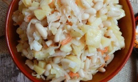 Здравствуйте, уважаемые читатели моего канала. Вот кто-то ещё погружен в мир консервации и заготовок на зиму, а я уже погружена в мир открывания банок с различными соленьями. Да, не сдержалась. Бабушка моего мужа прислала мне своей чудесной квашеной капусты. Я её поела немного...ну, три литровые банки...и баночка у меня осталась, не полезла уже. Казалось бы, убери на зиму, какая красота зимой открыть банку, да с вареной картошкой вприкуску, но нет, какая-то неведомая сила соблазняла меня что-то из этой капусты приготовить и, видимо, эта же сила и подкинула мне рецепт, на который я случайно наткнулась на одной из кулинарных страничек известной социальной сети. Название меня заинтриговало... "Белый винегрет". Не смогла не приготовить. Скажу вам, это очень вкусно, это больше, чем вкусно. А как же сытно и совсем не тяжело для организма. Теперь всем знакомым раздаю рецепт этого салата,очень хочу и с вами поделиться. Итак, сегодня готовим "Белый винегрет", что же нам понадобится? Ингредиен