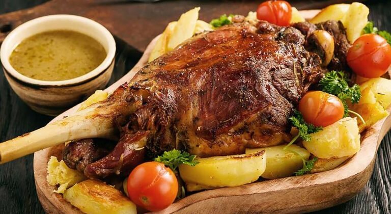 Привет! Что так может порадовать в воскресный семейный вечер? Как по мне, с этой ролью прекрасно справится домашний итальянский рецепт "Мясо, запеченное с картофелем и розмарином". Это, пожалуй, одно из самых популярных итальянских горячих блюд. Для его приготовления лучше всего подходит нежная молодая ягнятина. Время подготовки 30 минут ■ Запекание - 1,5 часа ■ 4–6 порций ■Сложность: просто Давайте узнаем что нам для этого потребуется: ■ Баранья нога с костью ■ 8 ломтиков вяленой грудинки или бекона ■ 4 зубчика чеснока ■ Тертая цедра 1 лимона ■ 2 веточки розмарина ■ 2 ст. л. мягкого сливочного масла ■ 2 кг картофеля, нарезанного небольшими ломтиками ■ 500 мл мясного или овощного бульона ■ Соль и свежемолотый черный перец Духовку разогрейте до 220°C. Бекон, чеснок, лимонную цедру и половину листьев розмарина измельчите в блендере, посолите и поперчите по вкусу. В баранине удалите лимфоузел, который находится возле сгиба сустава. Затем, сделайте глубокие проколы и нашпигуйте
