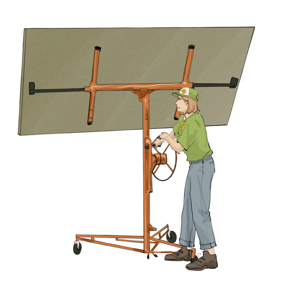 Подъёмник для ГКЛ: Что, Где и Почём купить? Давайте для начала посмотрим какой подъемник для гипсокартона возьмём для разбора. Брать сразу же дорогой Эдмовский за 103к рублей мне кажется будет на первых порах очень расточительно. Это будет естественно дешёвый подъёмник, так как тестирование не подразумевает серьёзных вложений, а так только проверка рабочей гипотезы: ускорения процесса и экономии средств на подсобнике. Но среди дешманских не хотелось взять что-то совсем ущербное, поэтому руководствуясь ценником и советами коллег, выбор пал на подъёмник от фирмы Аспро за 20-24к. рублей. Сразу скажу что одним из критериев выбора было скидочное предложение, так что в итоге он обошелся в 19к. По факту же я заплатил своими кровными итого меньше, так как 3к были оплачены баллами Спасибо, так как оборудование я покупал во Всехинструментах. На доставку потратил 200р, так как заказал самовывозом из точки, которая была рядом с текущим объектом. Подъёмник Аспро: первые впечатления Подъёмник