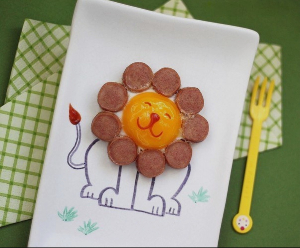 Яичница с сосисками на утро для Ваших детей. Легко и просто. Все довольны, особенно детки Ингредиенты: Сосиски 1 шт Яйцо 1 шт Кетчуп Соль по вкусу Отварив сосиску и обжарив яйцо, все выложите на тарелке, как показано на картинке. Необходимые детали дорисуйте пищевыми фломастерами. Приятного аппетита!