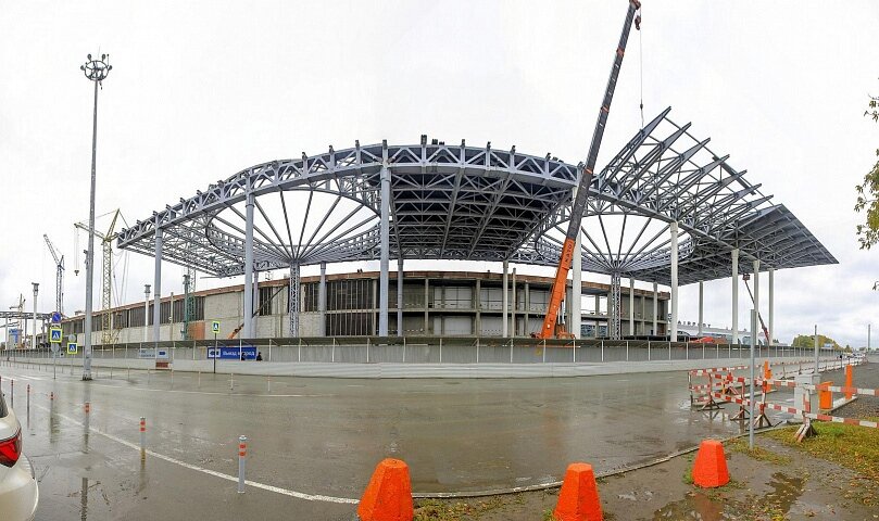 Год назад на территории главного аэропорта Новосибирска (им.Покрышкина) было начато строительство нового терминала. Его отличительной чертой является футуристический дизайн, заложенный в проекте. По плану размер здания превышает старое здание в два раза. Новый терминал оценивают в 14 млрд.р. В разработке проекта принимал участие известный архитектор С.Чобан. Его авторству принадлежит башня Федерация в Москва-Сити. За прошедший год уже построили три этажа корпуса и дошли до половины атриума с залом ожидания. Он будет выполнен в виде стального каркаса со стеклянным обрамлением. Для поддержки кровли предусмотрены тридцатиметровые колонны и гигантские сооружения в форме грибов, которые ориентированы по главной оси атриума. Два таких сооружения уже закончены. По замыслу авторов они являются символом самолетных турбин. Готовность здания сейчас составляет 40%. Возведение второго терминала запланировано на ближайшие годы (до 2025-го). Ориентировочно после окончания стройки комплекс нового аэр