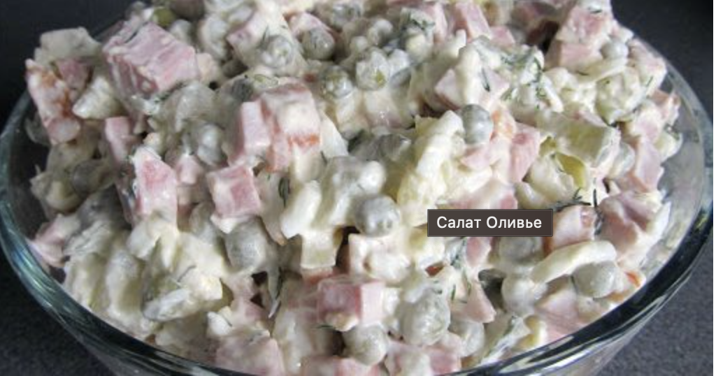 - Заправка Оливье только майонезом — утверждается, что заправлять нужно смесью майонез/сметана или натуральным йогуртом.