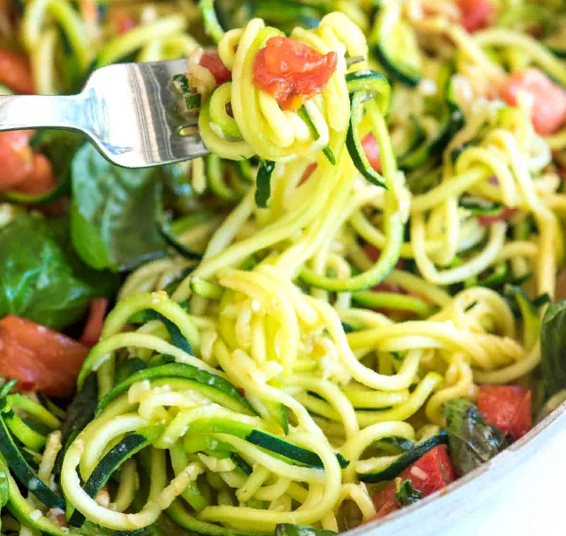 приготовление 8 минут варка 12 минут итого 20 минут Мы влюблены в этот простой рецепт пасты из цуккини. Здесь есть свежие цуккини, помидоры, базилик, пармезан и много чеснока. К тому же, на приготовление уходит всего 20 минут. Приготовьте это блюдо с лапшой из 100% цуккини или замените половину цуккини на обычные спагетти для более сытного блюда. Эту лапшу можно приготовить без сыра пармезан. Замените его вашим любимым сыром, который подходит для вегетарианцев, или используйте пищевые дрожжи. На 4 порции СМОТРИТЕ, КАК МЫ ГОТОВИМ РЕЦЕПТ ВАМ ПОНАДОБЯТСЯ 4 средних цуккини (около 2 фунтов) 3 столовые ложки оливкового масла экстра вирджин 1 столовая ложка измельченного чеснока (3-4 зубчика) 1/4 - 1/2 чайной ложки измельченных хлопьев красного перца, в зависимости от того, насколько острой вы любите пасту 2 средних помидора, нарезанных, см. примечание (около 12 унций) 1/2 чашки измельченного сыра пармезан, плюс больше для подачи, альтернативные варианты см. в примечаниях 1 чашка листьев бази