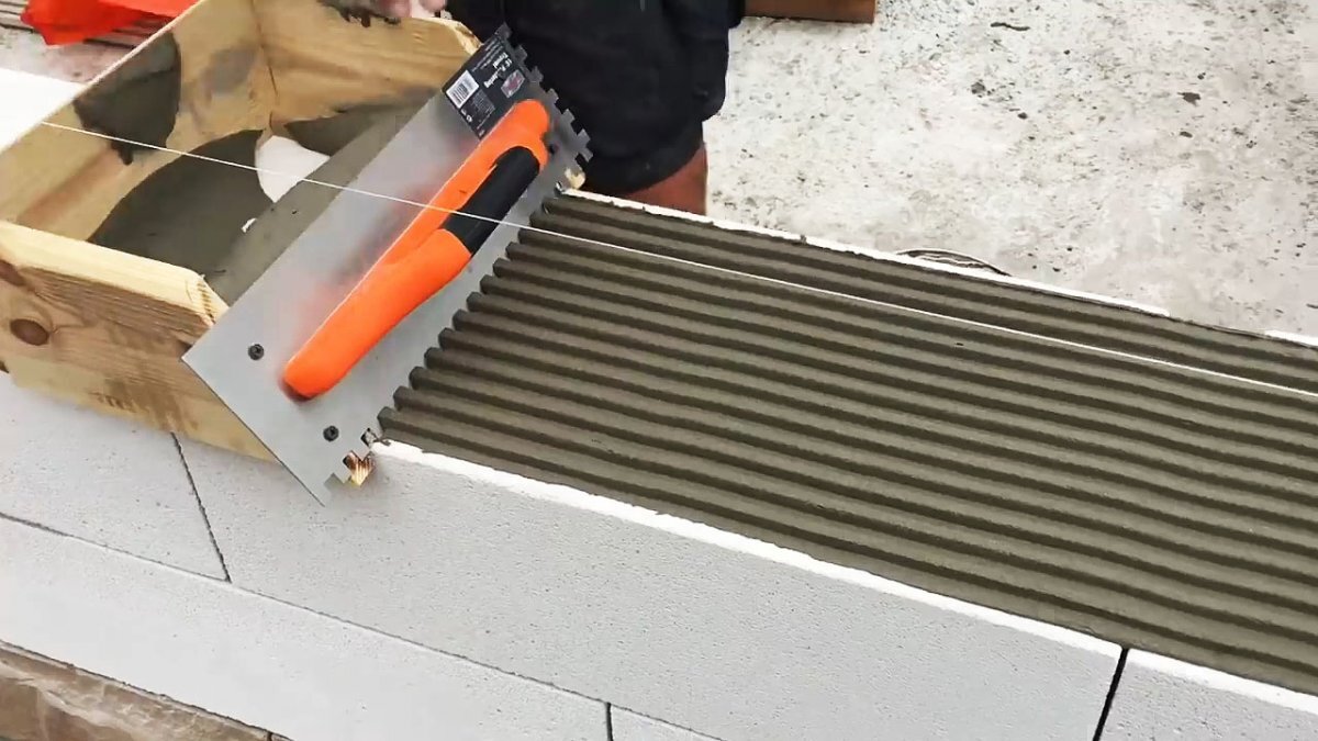 Любой каменщик знает насколько важна аккуратность и точность кирпичной кладки, особенно из современных материалов, таких как пенобетон или газобетон. Блоки из этих материалов достаточно ровные, а толщина шва исчисляется считанными миллиметрами. Стоит ли говорить о том, что обычным мастерком в работе с ними не обойтись. Предлагаем вам сделать простое и надежное приспособление для нанесения раствора, и оценить способ кладки с ним. С помощью него вы точно сэкономите время, силы, обеспечите качественную кладку. Собираем простое приспособление Материалы для него можно найти на любой стройке или мастерской. Подойдет фанера или доска толщиной 20-30 мм, шириной 10-15 см, и стандартная штукатурная кельма-гребень. Для скрепления всей конструкции понадобится лишь горстка саморезов или даже гвоздей.